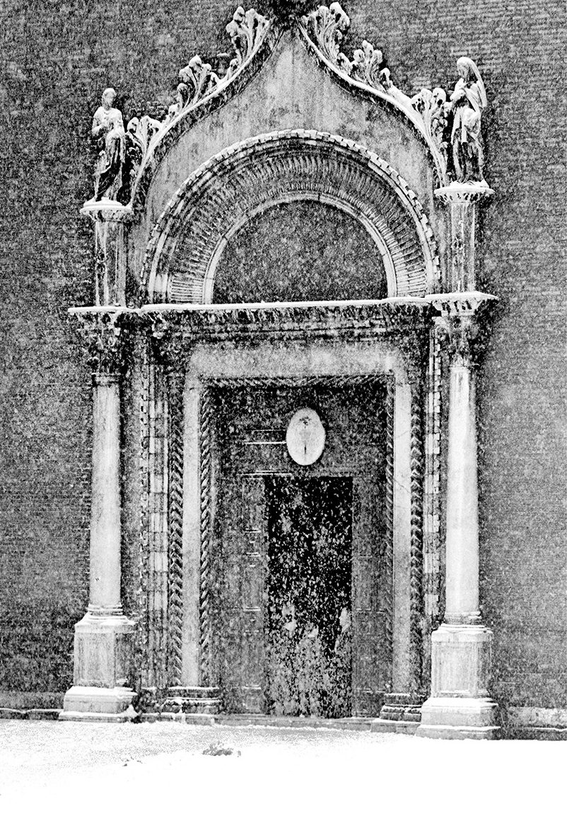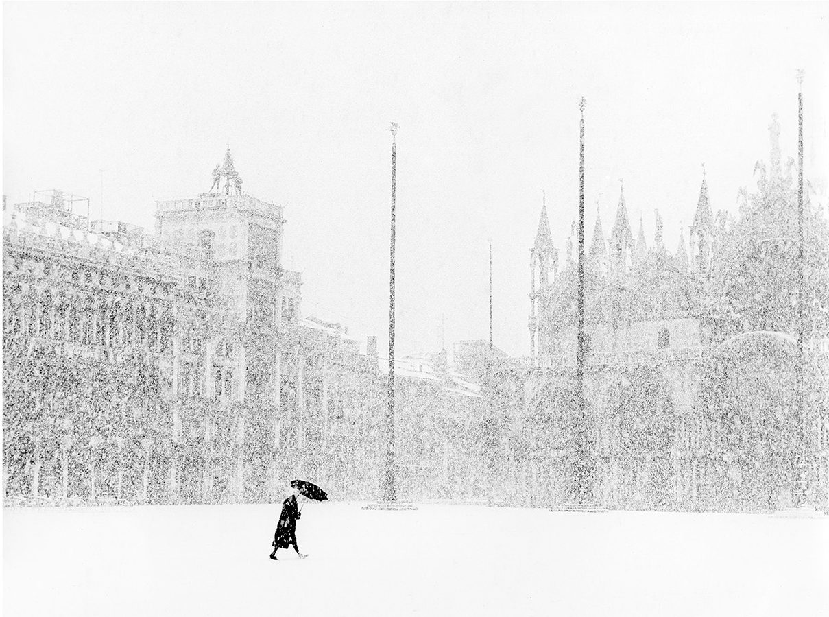 In these images of Venice, residents and visitors mingle, and each step leaves a dark imprint in this white tide. This collection of photographs pays tribute to the eternal beauty of the Serenissima, and to its metamorphoses. They bear witness to its resilience in the face of the vagaries of nature.