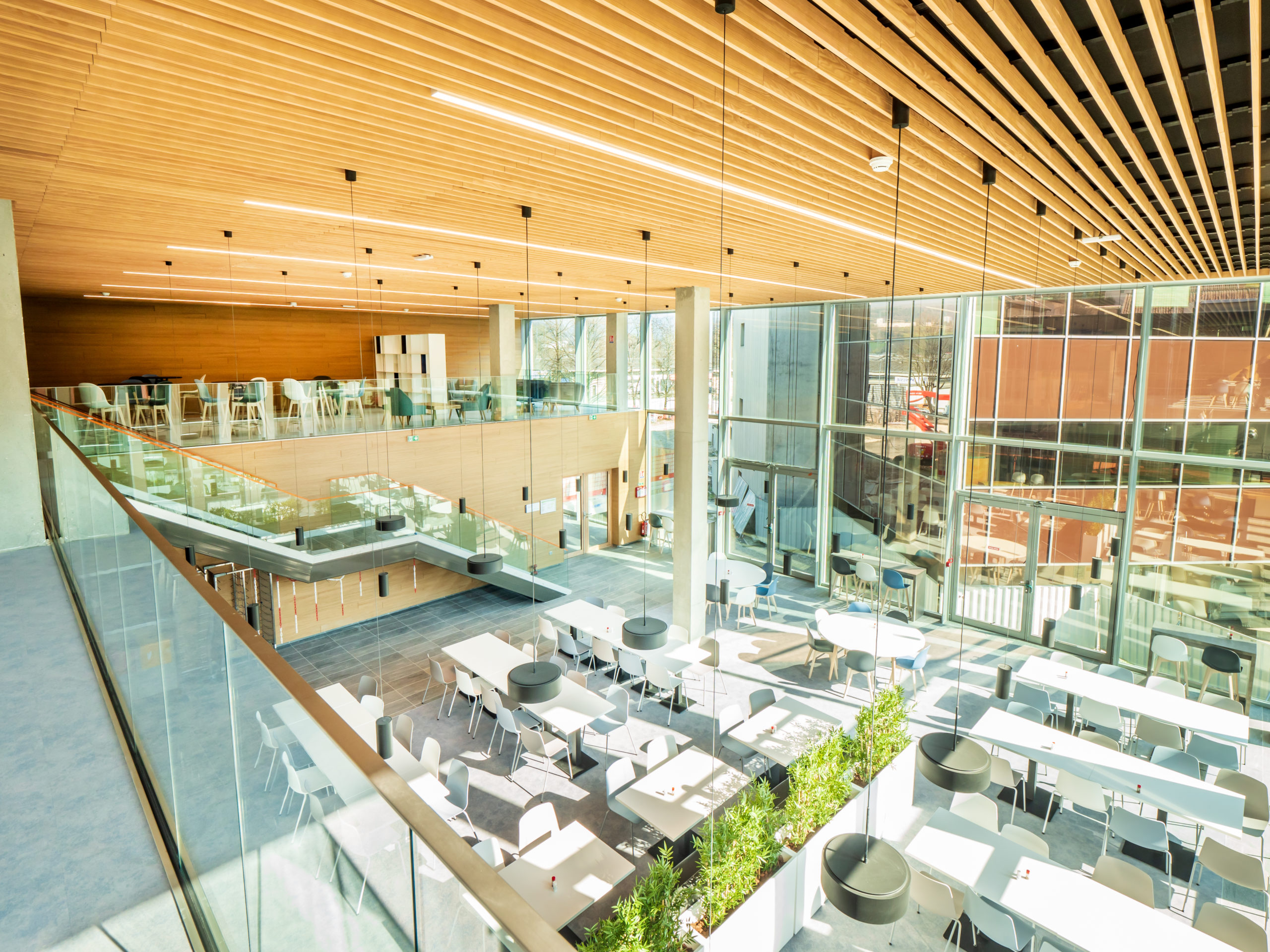 The design of the building is adapted to meet specific programming constraints, resulting in a compact “silo” type structure.This shape optimises space while meeting the requirements of the project. The building consists of three levels resting on a semi-buried car park. This configuration allows the ground floor to be raised, giving the façade spaces unobstructed views over the adjacent streets and surrounding low-rise buildings. This design seeks not only to maximise the efficient use of space but also to enhance the visual experience and interaction with the immediate urban environment. The architectural project includes an auditorium in continuity with the reception hall, benefiting from double height and large bay windows with sliding panels for flexible blackout. The adjacent catering area includes a dining room, a cafeteria and a lounge-club.