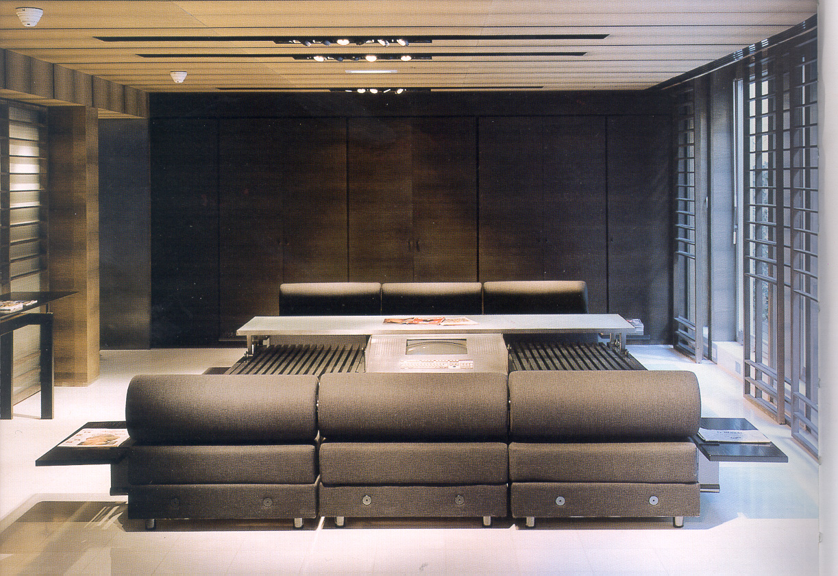 Ce système de canapés est issu du projet de 1991 destiné au Musée du Louvre. L’idée était d’aménager les salles avec une assise conçue pour permettre la vision des œuvres d’art de tous les côtés. Todo Modo trouve application aujourd’hui dans des salles d’attente, des espaces de réception et d’accueil, des bureaux et des lieux de co-working. Réalisé avec une structure en bois et métal apparentes couleur canon de fusil, son rembourrage est en mousse de polyuréthane revêtue de tissu ou de cuir.