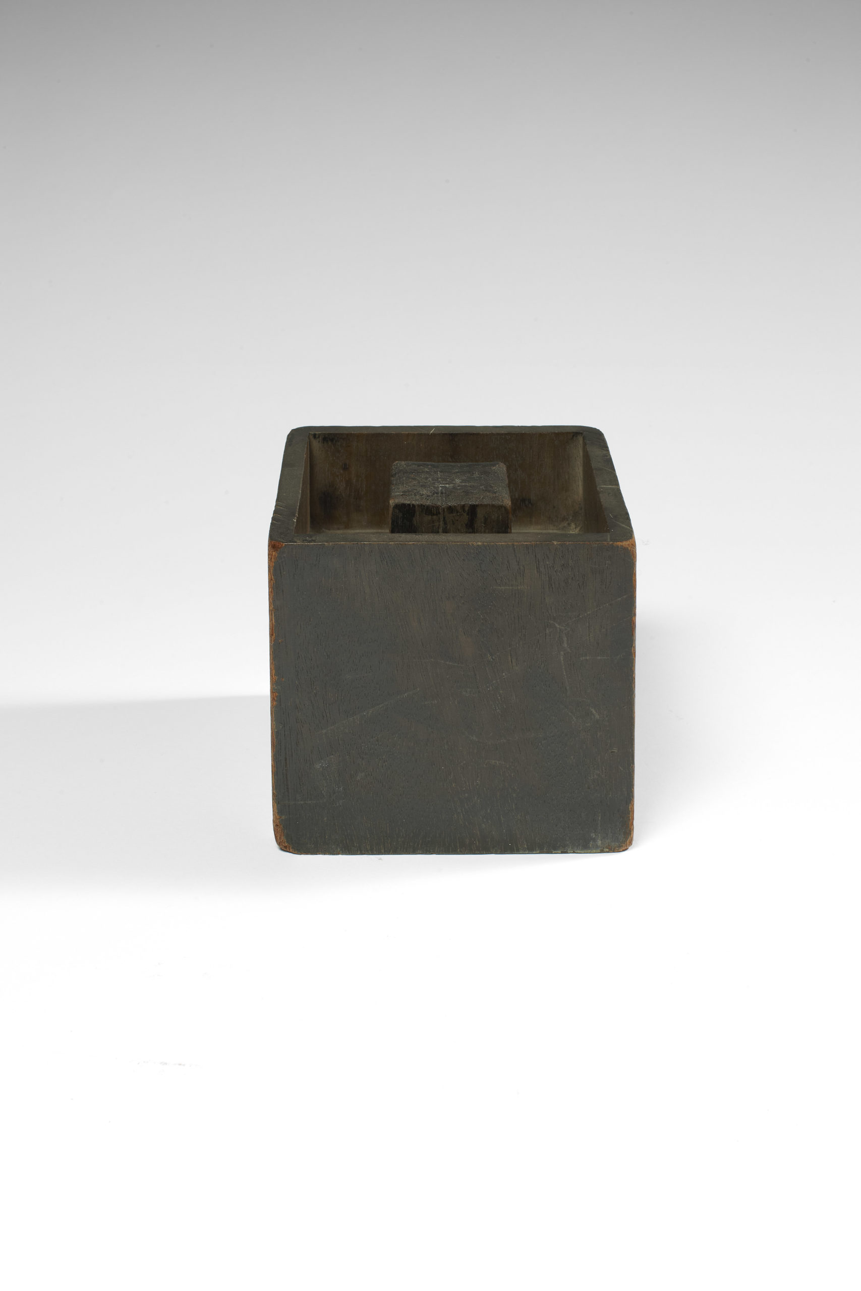Decorations inspired by the favourite motifs of Jean Lurçat: roosters, leaves, profiles and stars. Decorated china, high-gloss black, blue, yellow, black, mica, and white; case.