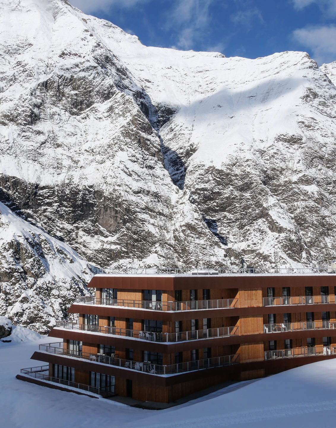 The programme consists of major leisure and entertainment facilities (convention centre and casino), the resort’s Welcome Bubble, a hotel structure, residential accommodation and shops, as well as additional parking and surface facilities. These four cylindrical buildings create a central axis connected to the port, creating a veritable green arena.