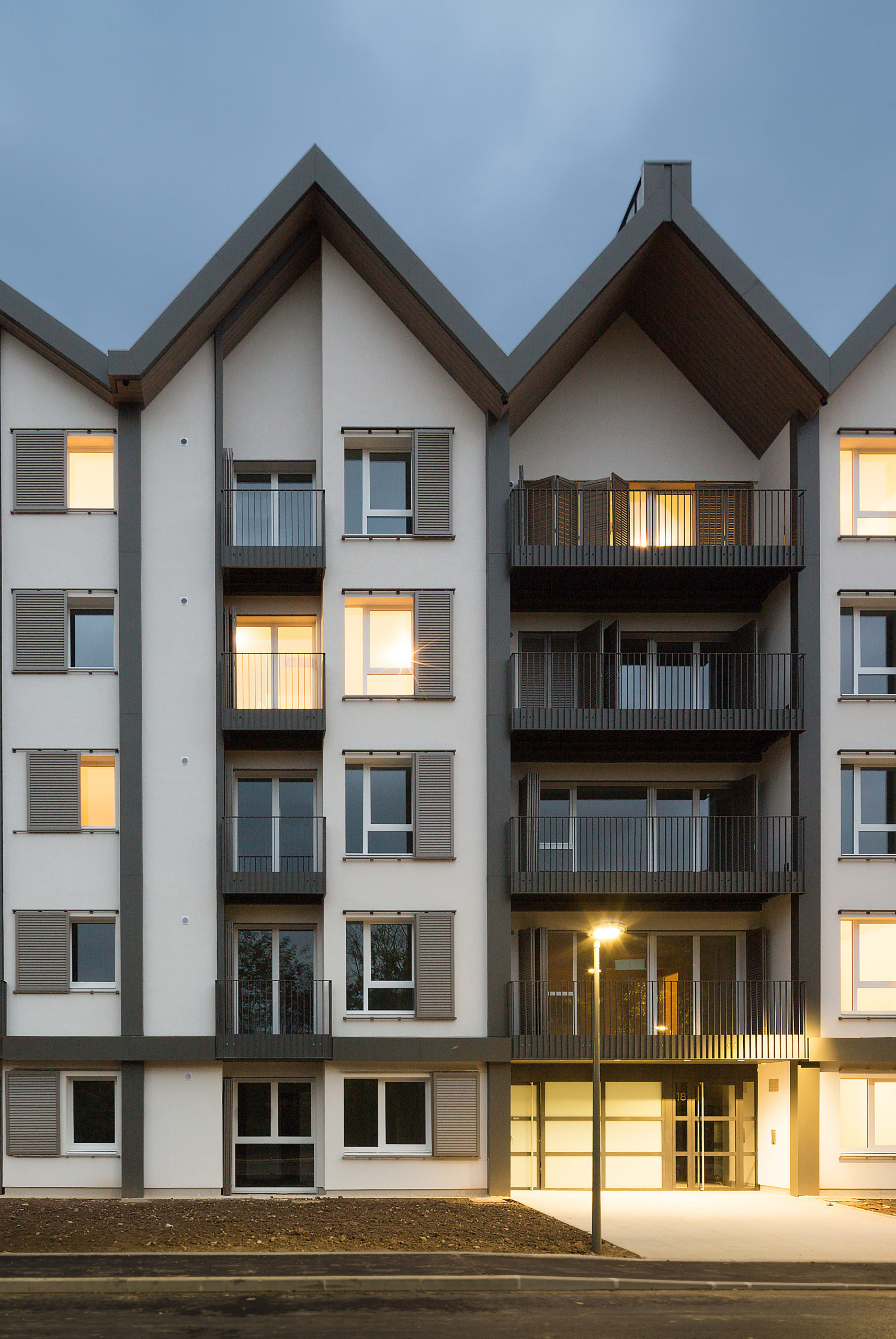 The tower houses a commercial space and a caretaker’s flat on the ground floor, offices on the first three floors, and residential units from the fourth to the nineteenth and top floor. An underground car park extends over 6 levels. The entrance hall opens onto the building’s garden.