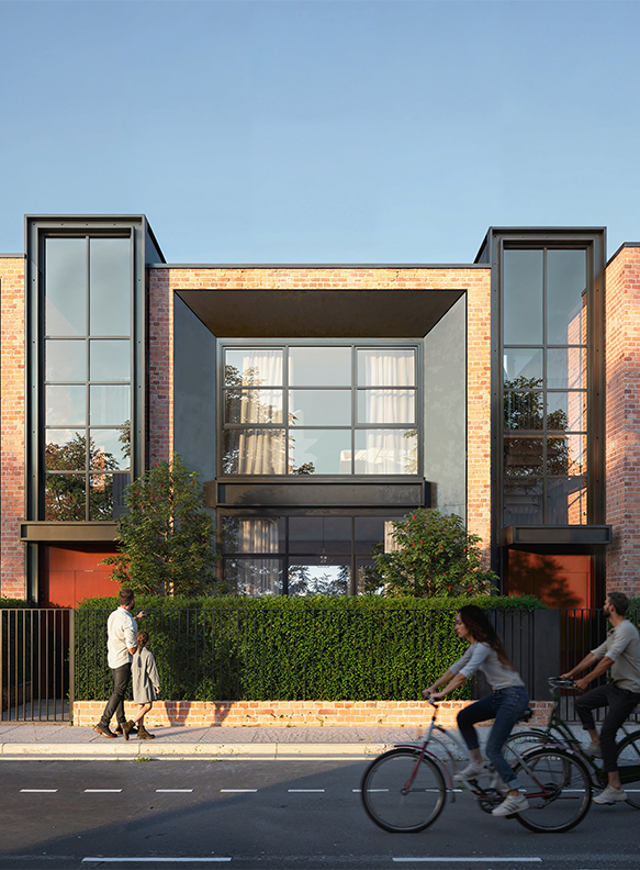 The result of a search for balance between urbanity and privacy, the proposed individual houses respect the architectural identity of the city while creating a more convivial living environment and encouraging mixed uses.