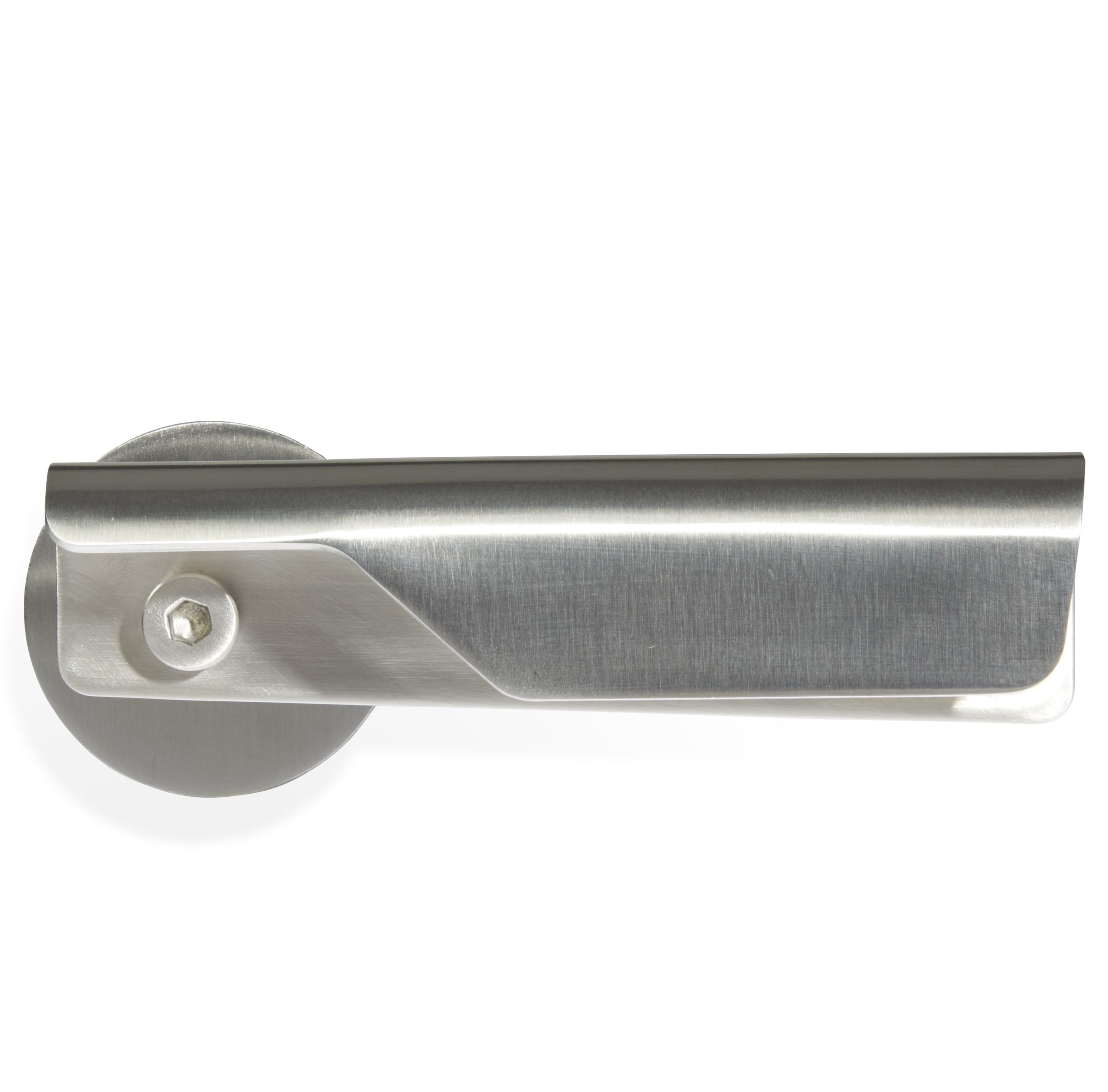 Poignée en inox, disponible sur rosace ronde ou différentes plaques de propreté. Finition brossée ou laquage de couleur.