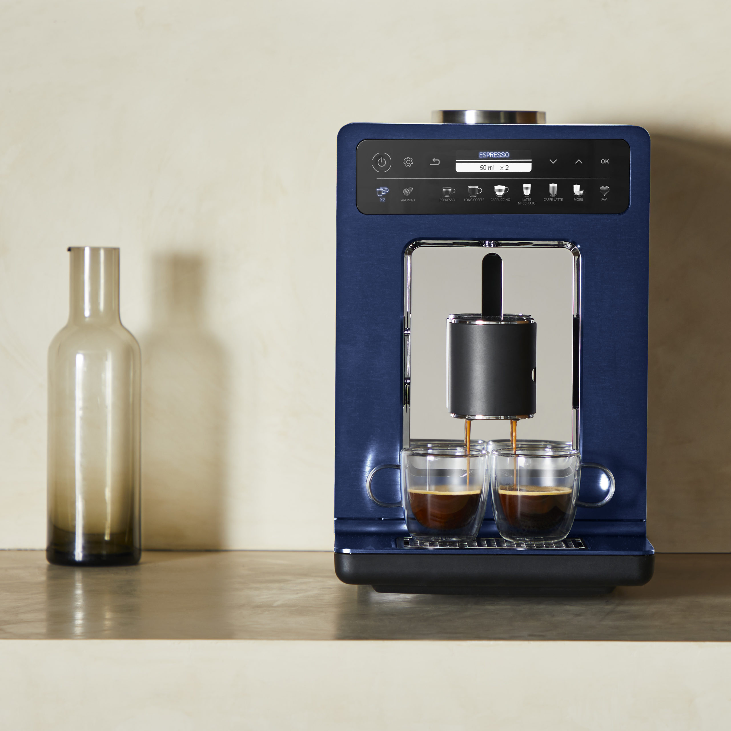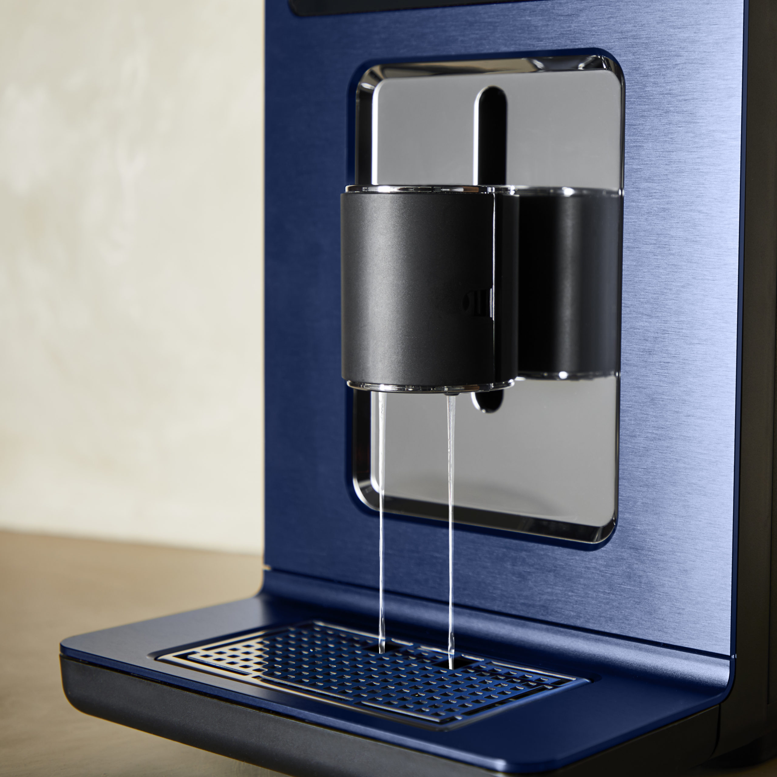 Ce nouveau modèle est une combinaison parfaite entre design élégant et minimaliste et performance. EVIDENCE by WILMOTTE se distingue par son design épuré et ses volumes équilibrés. Sa façade en aluminium brossé Bleu Ivano de la gamme APLAT by Wilmotte, sa grille en acier inoxydable et sa buse café surmontée d’un plastron en acier inoxydable brossé, lui confèrent un look moderne et intemporel.