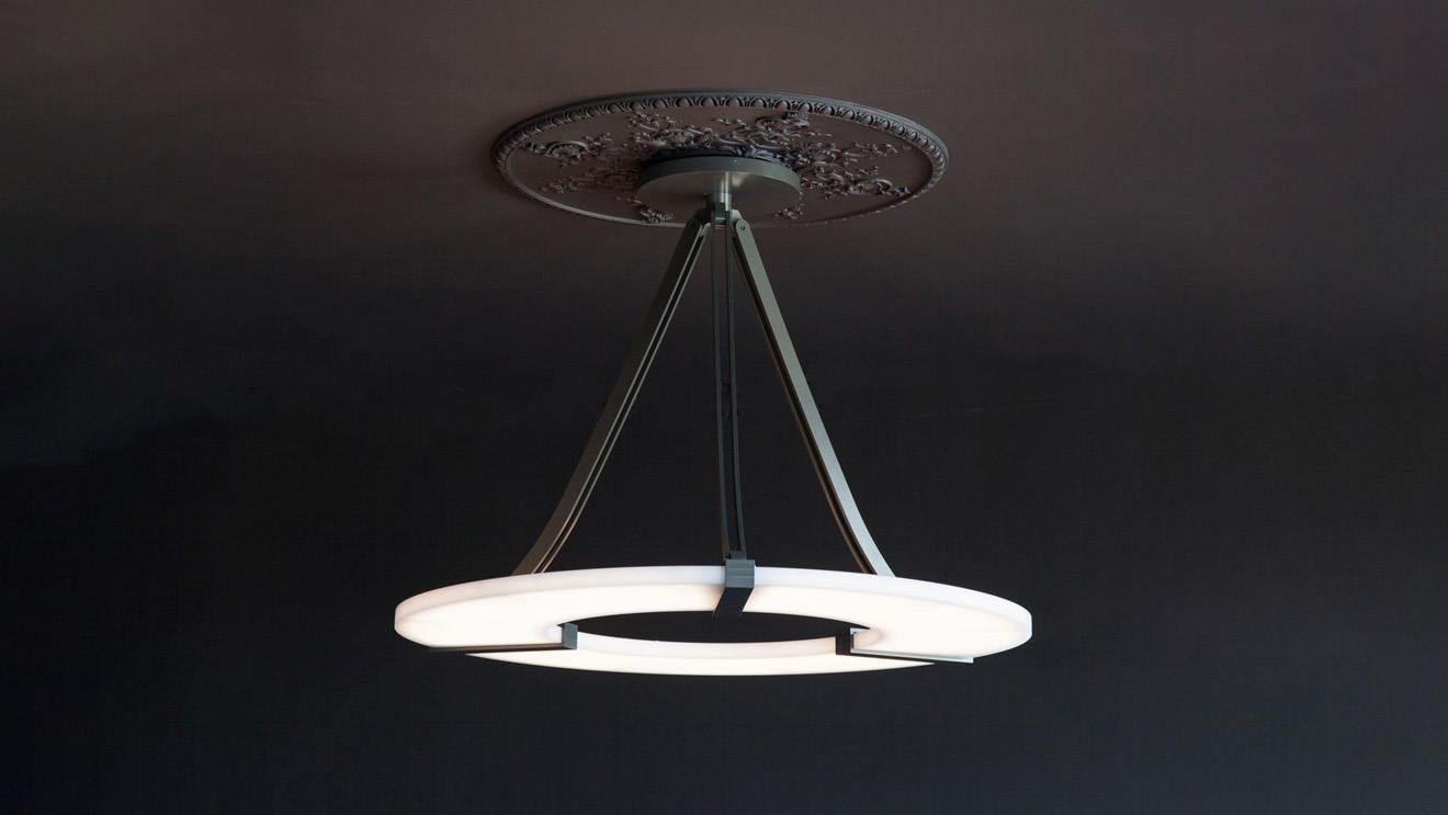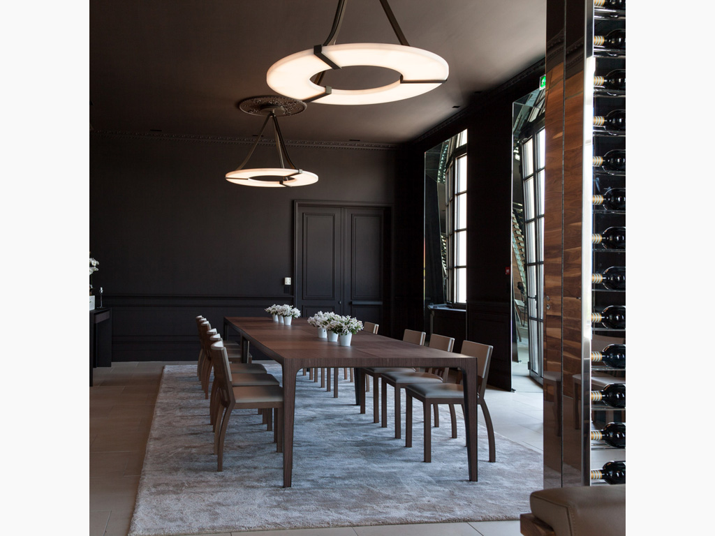 Suspension dessinée pour les espaces de réception du château Pédesclaux, Pauillac (France), entrée en gamme dans le catalogue Ozone en 2018.