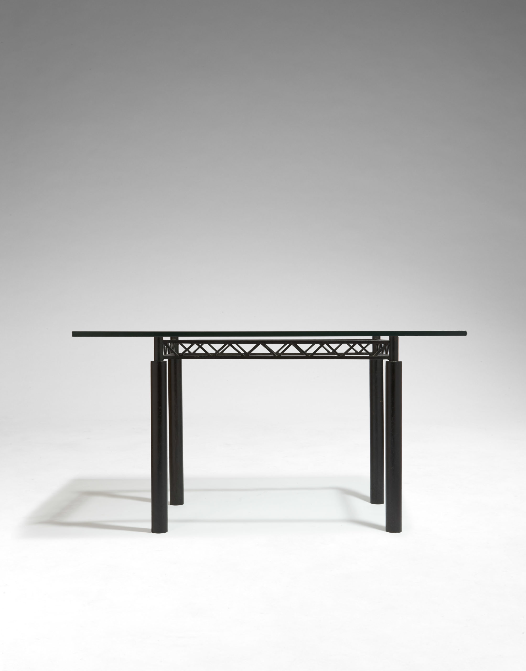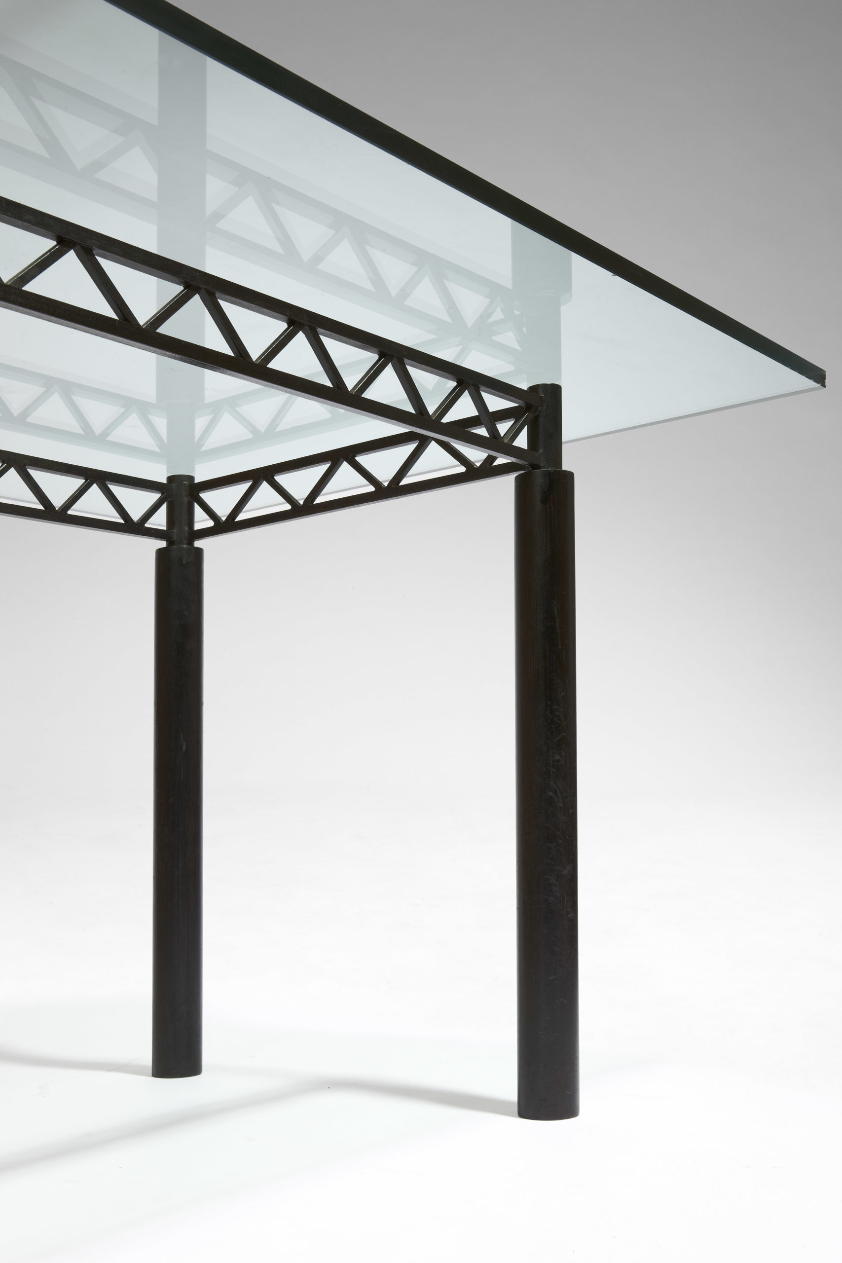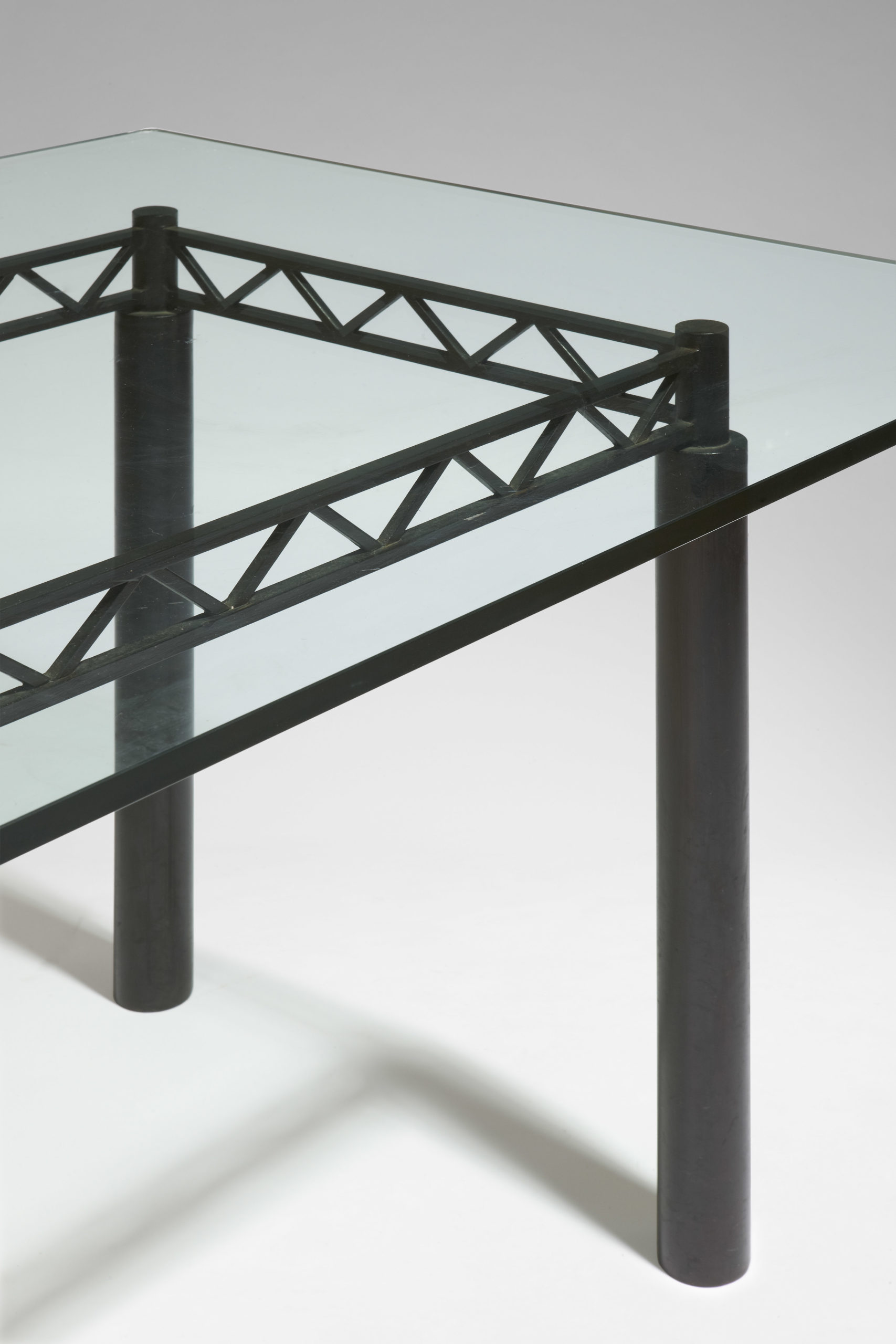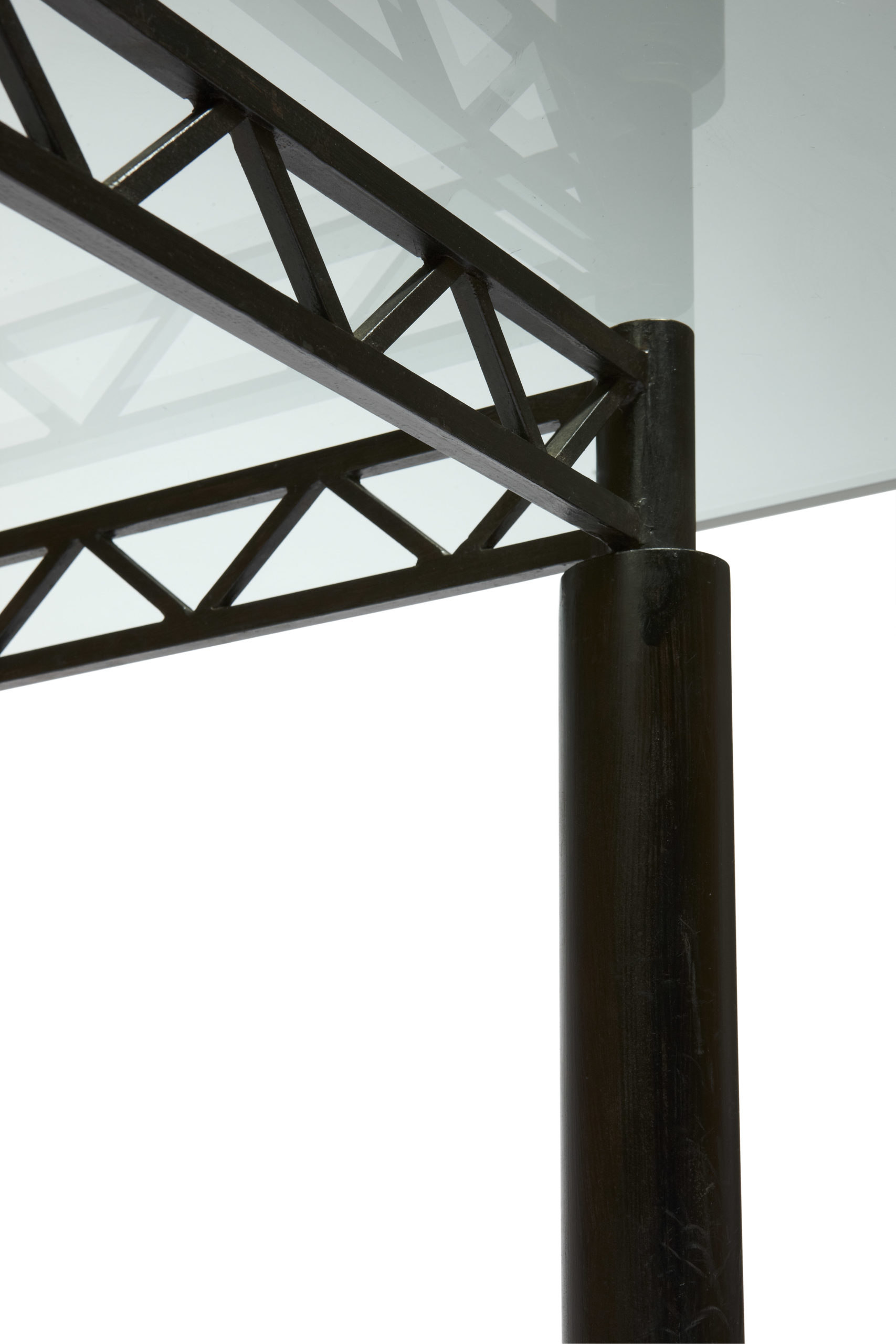 Acier rouillé-ciré noir et plateau en verre clair de 19 mm