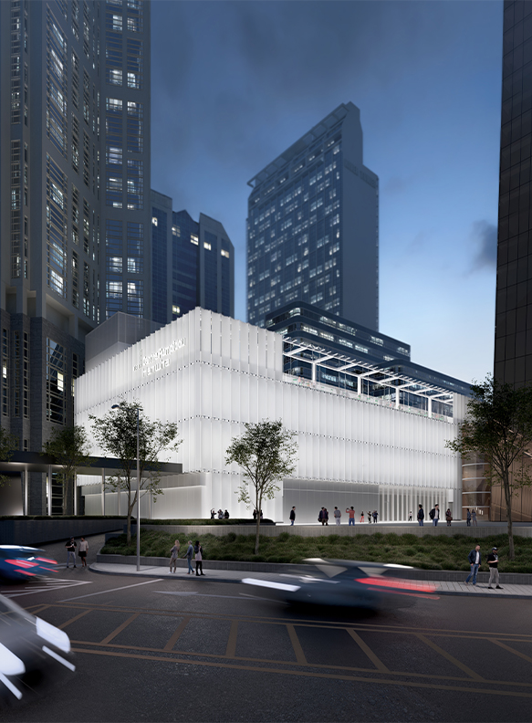 Pour accueillir cette nouvelle institution, Hanwha a confié à Wilmotte & Associés la réhabilitation d’un site de 15 000 m² situé à la base de la tour 63, gratte-ciel emblématique et siège du groupe Hanwha, sur l’île de Yeouido à Séoul, au cœur du quartier financier.