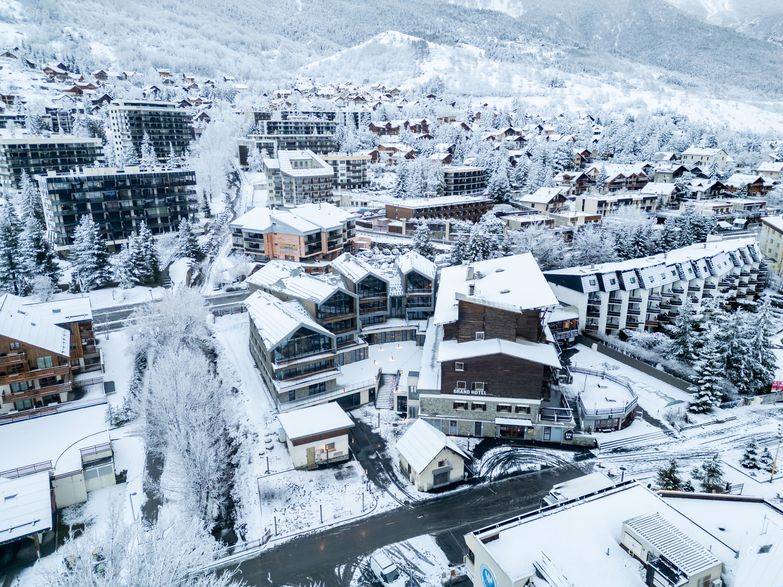 Ce projet d’extension du Grand Hôtel et de construction de commerces se situe à Saint-Chaffrey, à cinq kilomètres de Briançon, face au départ principal de la station de sports d'hiver de Serre Chevalier Vallée.