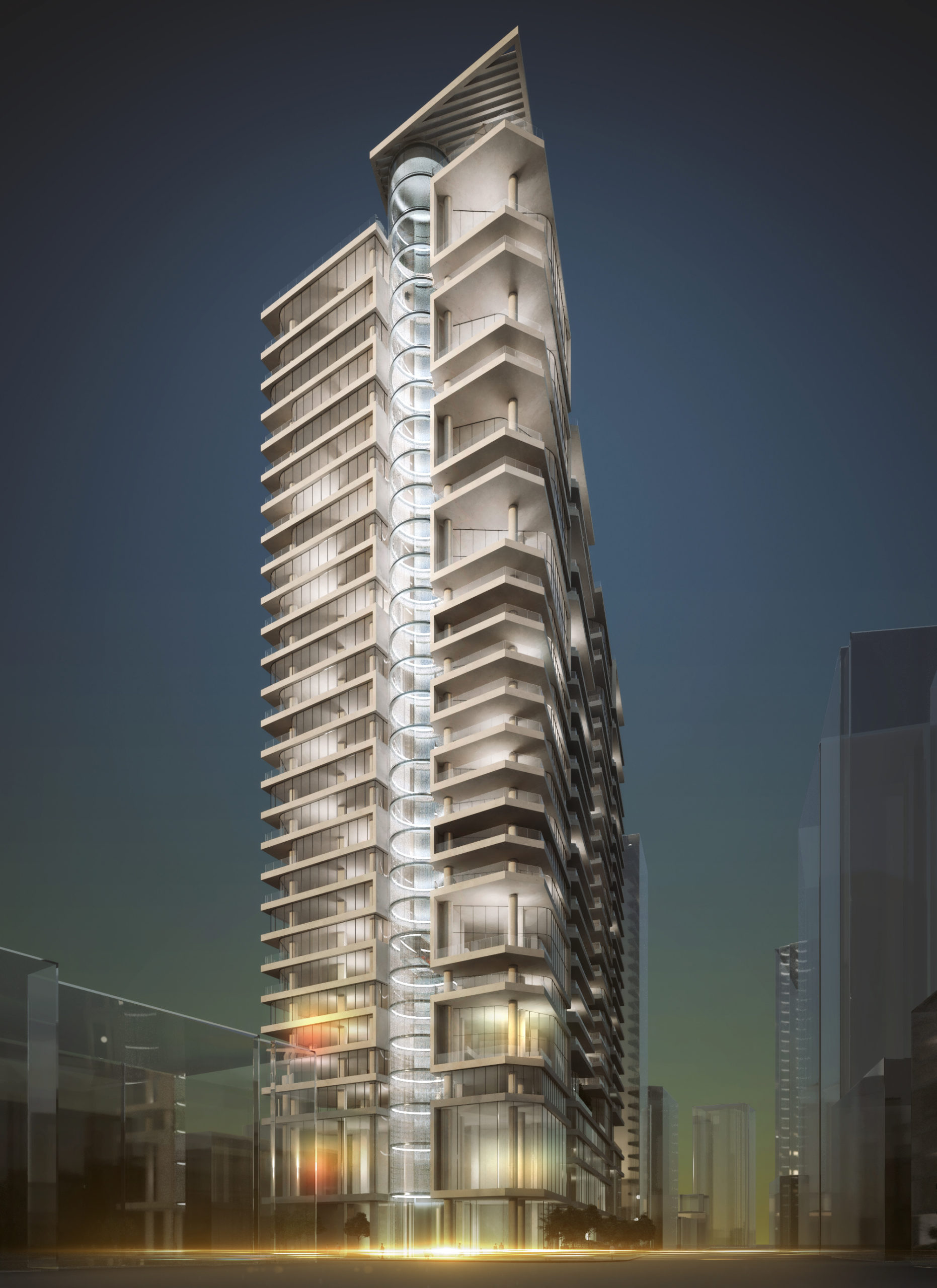 Le concept architectural unique de cette tour résidentielle est centré autour d’un ascenseur à voitures circulaire et transparent. Il facilite le transport des véhicules mais sert également de pièce maîtresse esthétique. Cette caractéristique visible jour et nuit, confère à la structure un dynamisme et une personnalité singuliers, faisant d’elle une œuvre d’art distincte dans le panorama urbain. L’ascenseur permet aux résidents et aux visiteurs de voir les voitures se déplacer. Chaque appartement est conçu autour de cet élément, avec une salle d’exposition pour les voitures qui sépare les espaces de vie diurnes et nocturnes. Situé à proximité de la célèbre plage de Haeundae, le site tire parti de son environnement en offrant des vues imprenables sur la baie de Busan et l’océan.
