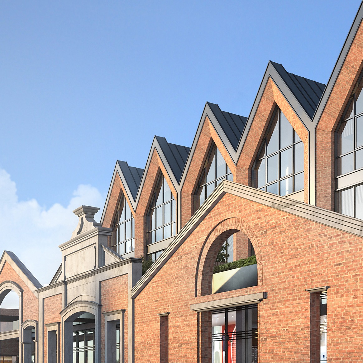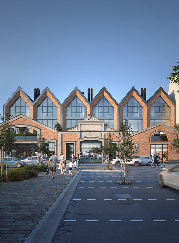 La façade principale de l’ancien entrepôt, qui présente un cachet architectural notable tant dans son dessin que dans sa composition et sa matière, est préservée et mise en valeur. Elle assume un nouveau rôle de « façade théâtre », invitant à découvrir les espaces de vie qui se déploient à l’intérieur ou à l’arrière de ce front bâti.