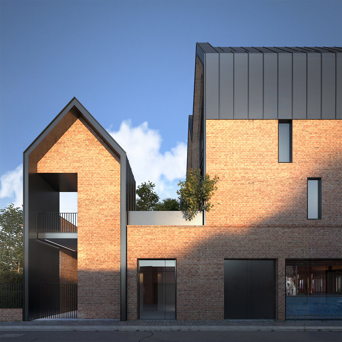 Les matériaux utilisés sont peu nombreux. La brique, élément fondateur du projet, inscrit l’ensemble dans la continuité du patrimoine architectural local et lui apporte chaleur et texture. Le verre, quant à lui, introduit une contemporanéité subtile et élégante, et ouvre les espaces vers l’extérieur, offrant des vues panoramiques privilégiées et maximisant l’apport de lumière naturelle. Le métal, par ses lignes épurées et sa durabilité, contraste et complète cette trilogie qui assure non seulement l’esthétique mais aussi la pérennité du projet.