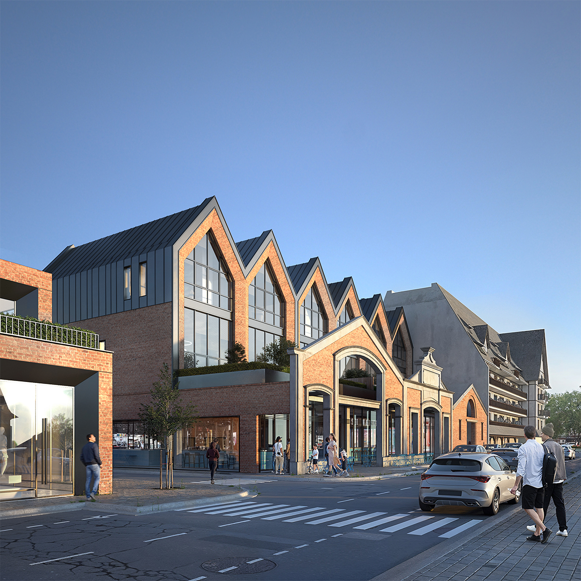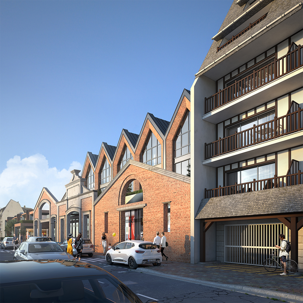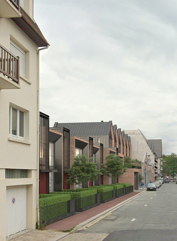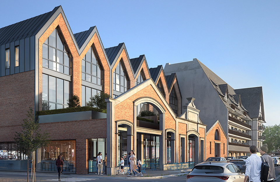La Presqu’île de la Touques, idéalement située entre le littoral et le centre-ville de Deauville, est un quartier en cours de développement et de renouvellement urbain. Le projet s’inscrit dans cette transformation en proposant la construction de six logements au-dessus d’un socle accueillant trois commerces, sur le site d’un ancien entrepôt.
