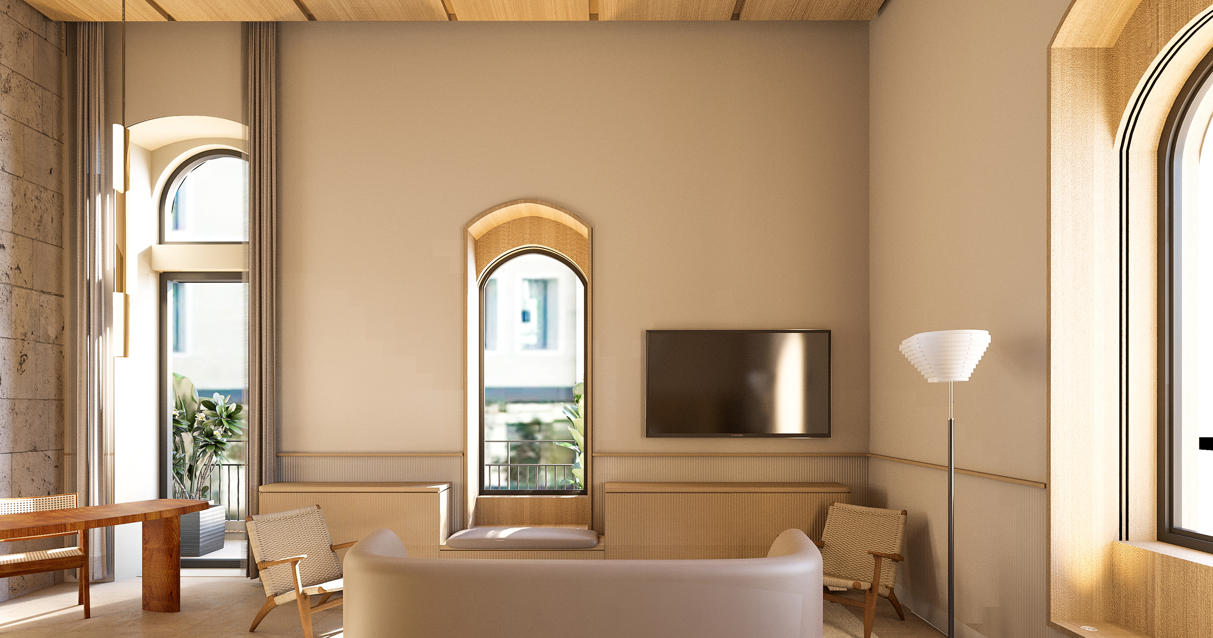 Le bâtiment signal, hôtel 3* annonçant l’îlot depuis l’hypercentre, se distingue par sa hauteur et une pierre plus claire. Les attiques, sur deux niveaux, sont couverts d’une charpente en bois massif, intégrant des panneaux photovoltaïques.