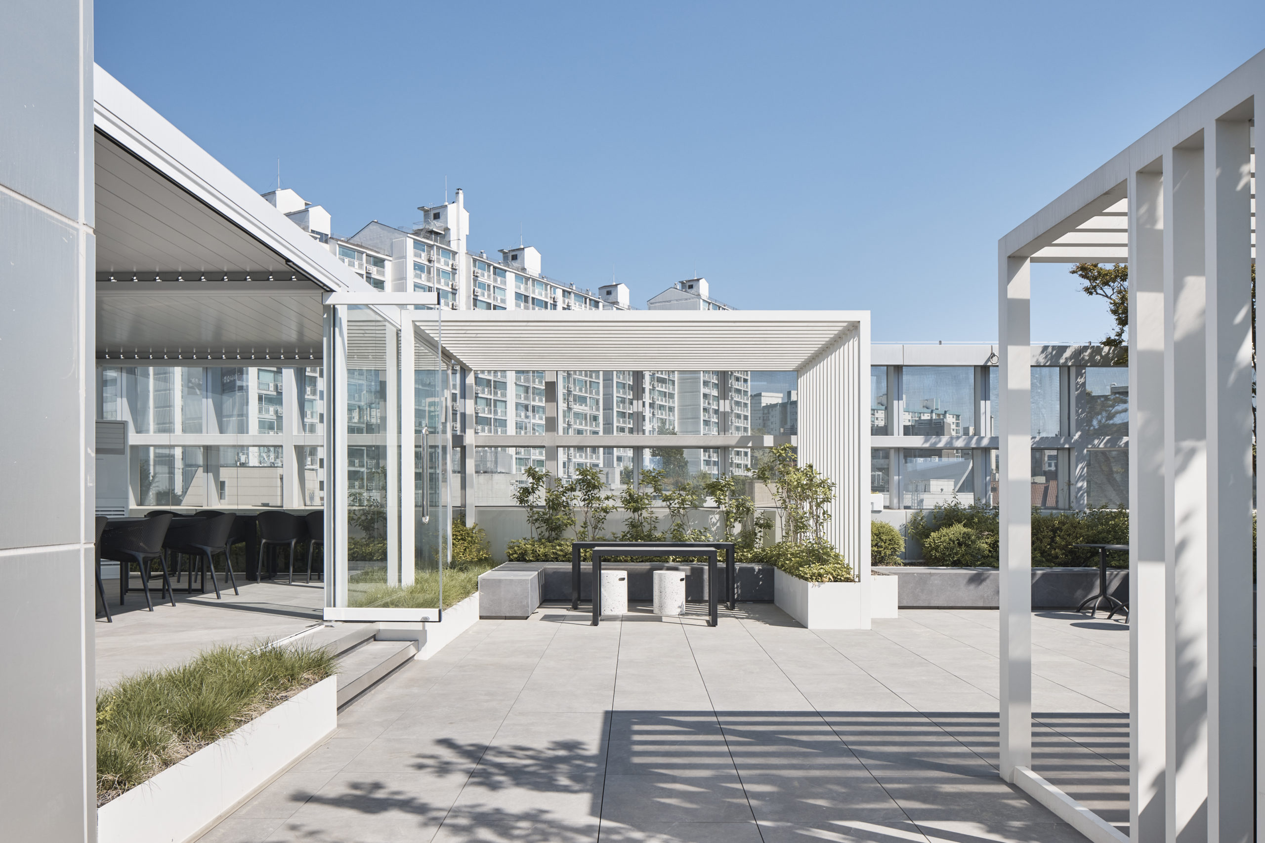 Au sommet du bâtiment, une toiture terrasse spacieuse offre aux étudiants un cadre de repos privilégié et une vue imprenable sur les alentours.